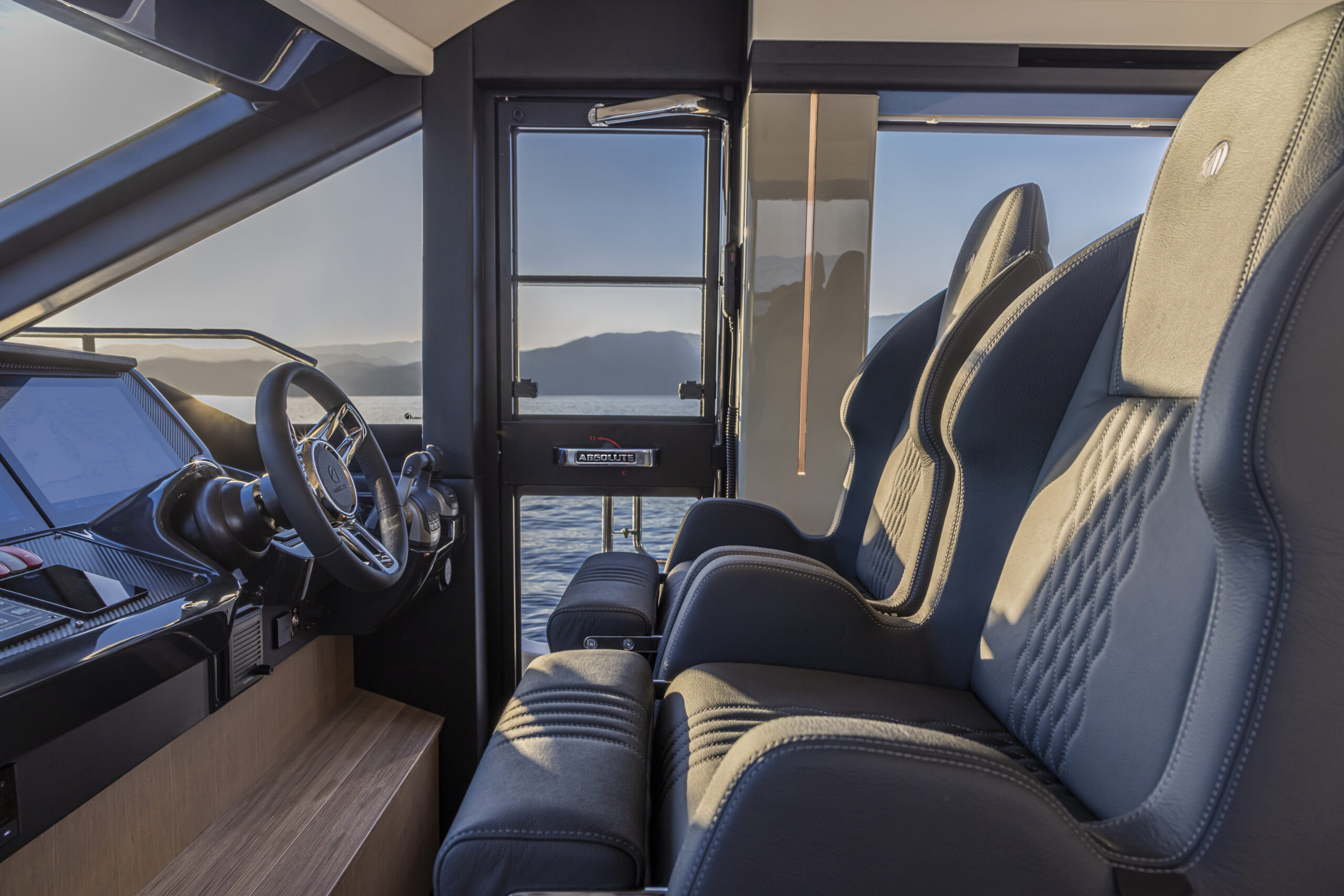 The strong personality of Absolute 56 FLY shines through its striking design and refined interiors. It offers numerous storage areas for a tidy living and sleeping space, along with a modern kitchen and washer-dryer in the lower deck hallway.